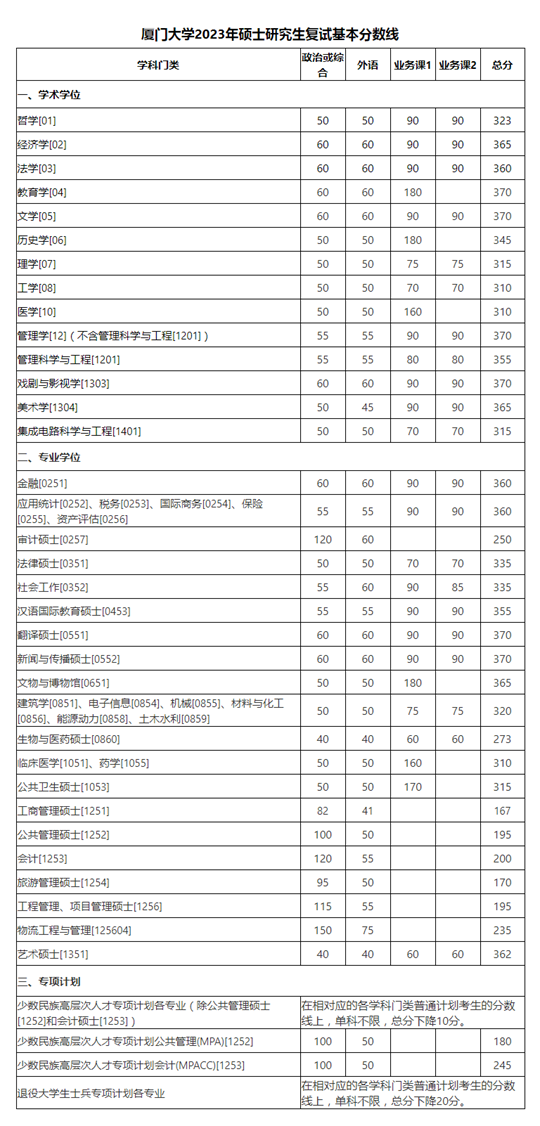 | 廈門大學2023年碩士研究生復(fù)試基本分數(shù)線 |