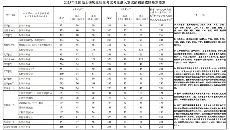 | 《2025年全國碩士研究生招生考試考生進入復(fù)試的初試成績基本要求》(國家分?jǐn)?shù)線) |