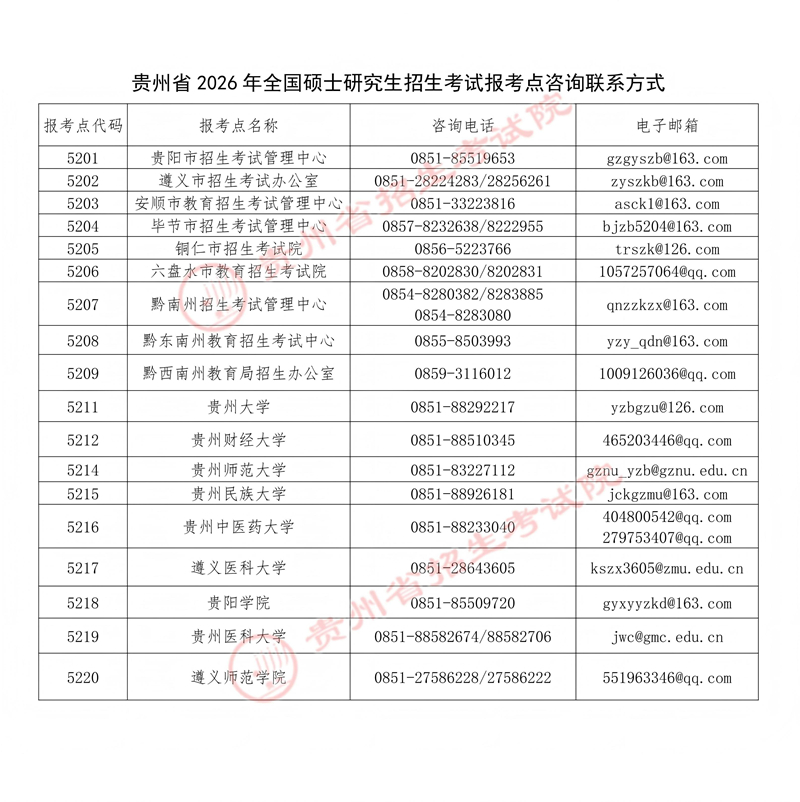 七、貴州省2026年全國(guó)碩士研究生招生考試報(bào)考點(diǎn)咨詢聯(lián)系方式