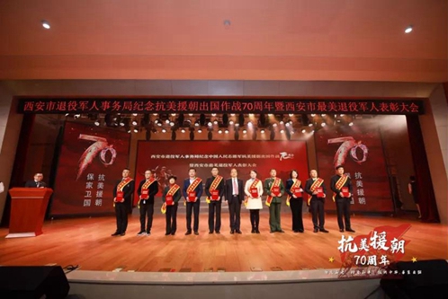 為表彰最美退役軍人,10月27日,西安市退役軍人事務(wù)局舉行了紀念抗美援朝出國作戰(zhàn)70周年暨西安市“最美退役軍人”表彰大會。