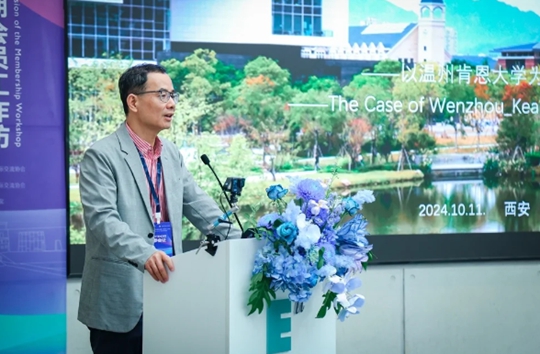 溫州肯恩大學(xué)黨委副書記、副校長(zhǎng)鄭曉東以“構(gòu)建創(chuàng)意生態(tài),高質(zhì)量建設(shè)國(guó)際化教育社區(qū)”為主題作專題報(bào)告。鄭曉東從大學(xué)的歷史起源出發(fā),結(jié)合世界各地著名大學(xué)的發(fā)展歷程,通過古今中外大學(xué)校園的對(duì)比,深入探討了不同文化背景下校園建設(shè)的獨(dú)特性與共同點(diǎn)。他特別強(qiáng)調(diào),未來大學(xué)校園不僅是學(xué)術(shù)和知識(shí)傳播的空間,更應(yīng)成為連接文化、促進(jìn)創(chuàng)新的國(guó)際化交流平臺(tái)。這為與會(huì)者提供了一個(gè)全新的視角,幫助大家更好地理解如何將校園作為推動(dòng)國(guó)際化教育的重要載體。