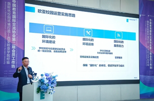 10月11日,在西安歐亞學(xué)院舉辦的中國(guó)教育國(guó)際交流協(xié)會(huì)第二期會(huì)員工作坊,以“國(guó)際化校園環(huán)境打造——西安歐亞學(xué)院經(jīng)驗(yàn)”為主題,匯聚來自全國(guó)各地的教育專家與從業(yè)者們,共同探討國(guó)際化校園環(huán)境的建設(shè)經(jīng)驗(yàn)與面臨挑戰(zhàn),深入交流和分享在構(gòu)建創(chuàng)意生態(tài)、促進(jìn)高等教育國(guó)際化與環(huán)境協(xié)同進(jìn)化方面的寶貴見解,以推動(dòng)國(guó)內(nèi)高校國(guó)際化進(jìn)程中的創(chuàng)新與發(fā)展。