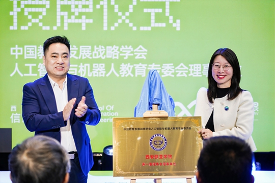 慶典儀式上,中國(guó)教育發(fā)展戰(zhàn)略學(xué)會(huì)人工智能與機(jī)器人教育專(zhuān)業(yè)委員會(huì)常務(wù)副秘書(shū)長(zhǎng)常根景和西安歐亞學(xué)院副校長(zhǎng)張樂(lè)芳共同為信息工程學(xué)院成為“中國(guó)教育發(fā)展戰(zhàn)略學(xué)會(huì)人工智能與機(jī)器人教育專(zhuān)業(yè)委員會(huì)理事單位”揭牌。常根景對(duì)學(xué)院的專(zhuān)業(yè)發(fā)展和創(chuàng)新能力給予高度評(píng)價(jià),并祝愿學(xué)校和學(xué)院在未來(lái)的發(fā)展中取得更加輝煌的成就。