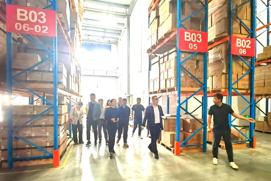 18日下午,劉瑾一行參觀了得力集團(tuán)成都分公司智慧倉庫,受到得力集團(tuán)川藏區(qū)域總經(jīng)理、2010屆市場營銷專業(yè)董偉業(yè)校友的熱情接待。董偉業(yè)介紹了得力集團(tuán)的發(fā)展歷程、核心業(yè)務(wù)、市場定位以及發(fā)展規(guī)劃,分享了自己大學(xué)畢業(yè)后如何從得力集團(tuán)一名普通銷售員一步步成長為區(qū)域總經(jīng)理的經(jīng)歷,希望與母校、校友企業(yè)之間持續(xù)開展交流與合作。得力集團(tuán)西南區(qū)域倉是得力西南地區(qū)最大的物流貯存?zhèn)},有著高效先進(jìn)的現(xiàn)代化智能倉儲(chǔ)體系。劉瑾為校友所取得的成績頻頻點(diǎn)贊。