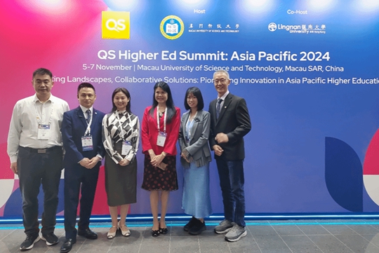 為進(jìn)一步提升學(xué)校的國(guó)際影響力和教育質(zhì)量,西安歐亞學(xué)院副校長(zhǎng)孫建榮一行于11月5日至7日前往澳門(mén)科技大學(xué)參加2024QS亞太高等教育峰會(huì),并訪(fǎng)問(wèn)了澳門(mén)大學(xué)、澳門(mén)科技大學(xué)、澳門(mén)城市大學(xué)以及香港大學(xué)。校長(zhǎng)助理趙軍鏡、教學(xué)質(zhì)量評(píng)估中心主任張萍、國(guó)際合作與交流中心主任丁潔等參加。