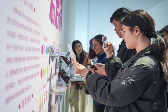 英國創(chuàng)意藝術(shù)大學(xué)(UCA)中國區(qū)經(jīng)理Smile Lu通過視頻影像遠(yuǎn)程向“設(shè)計奇遇:EAaD X UCA雙校聯(lián)展”的順利開幕表示祝賀。展覽匯集了120余件學(xué)生作品,涵蓋了設(shè)計史、建筑與環(huán)境、圖形設(shè)計、多媒體影像、非遺新文創(chuàng)以及數(shù)字繪畫等多個領(lǐng)域。不同教育背景的學(xué)生因“設(shè)計”相遇在此,共同呈現(xiàn)一場融合了創(chuàng)新精神與國際視野的設(shè)計交流展覽,他們以不同的設(shè)計理念和創(chuàng)作形式,探索新穎的表達方式和感官體驗。這不僅是一次視覺與思維的碰撞,更是艾德藝術(shù)設(shè)計學(xué)院(EAaD)與英國創(chuàng)意藝術(shù)大學(xué)(UCA)在地國際化教育理念的一次深度交流與合作。