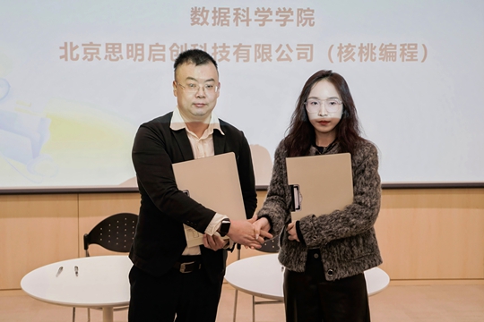 中興通訊股份有限公司作為全國(guó)領(lǐng)先的通信解決方案提供商,未來(lái)將在5G技術(shù)與數(shù)據(jù)科學(xué)的融合、創(chuàng)新、人才培養(yǎng)、實(shí)踐基地建設(shè)等方面與學(xué)院開(kāi)展深度合作。北京學(xué)而思將在教育、數(shù)據(jù)挖掘、智能教學(xué)、系統(tǒng)開(kāi)發(fā)等方面與學(xué)院展開(kāi)合作,探索數(shù)據(jù)科學(xué)學(xué)院如何更好地服務(wù)于教育創(chuàng)新,提升教育質(zhì)量。核桃編程將與學(xué)院在編程、教育、課程創(chuàng)新、編程人才、數(shù)據(jù)素養(yǎng)培養(yǎng)等方面深入合作,為培養(yǎng)未來(lái)的科技創(chuàng)新人才貢獻(xiàn)力量。(楊舒涵 馬臻 劉燕 賈夢(mèng)瑤 楊懿涵/文)