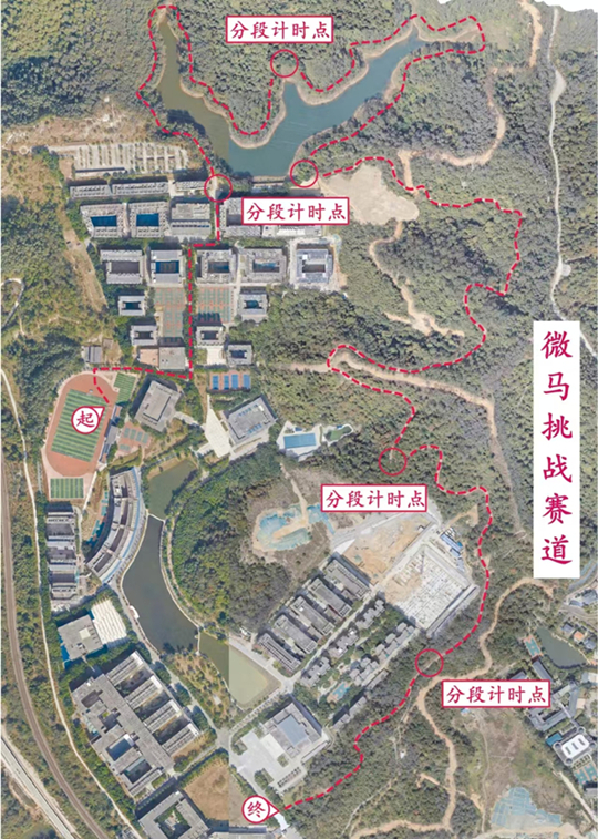 本屆微馬賽道設(shè)計(jì)別具匠心,深度融合校園景觀與競(jìng)技挑戰(zhàn)。選手們從田徑場(chǎng)出發(fā),途經(jīng)三飯、四飯食堂生活區(qū),感受濃厚的生活氣息;隨后北上繞行心形湖,在碧波微光與湖畔清風(fēng)中奔跑;最后轉(zhuǎn)入東部越野賽道,直面起伏地勢(shì)與蜿蜒小徑的考驗(yàn),充分錘煉體能意志。全程4.5公里,既是一次視覺之旅,也是一次毅力之行。
