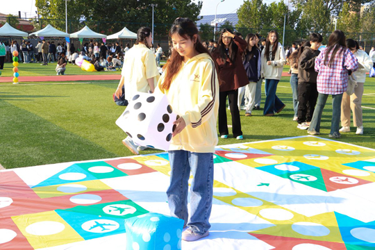 本次活動(dòng)聯(lián)動(dòng)各二級(jí)學(xué)院,精心構(gòu)筑三大心理成長(zhǎng)路徑,系統(tǒng)整合七大板塊內(nèi)容,引領(lǐng)學(xué)生在沉浸式體驗(yàn)中探索自我、滋養(yǎng)心靈。團(tuán)隊(duì)協(xié)作區(qū)設(shè)有“合力建塔”“大型撲克牌”等項(xiàng)目,引導(dǎo)學(xué)生在溝通與配合中建立信任,從集體勝利中獲取深層歸屬感與快樂(lè);思維挑戰(zhàn)區(qū)包含“智拼七巧板”“地面飛行棋”“大富翁”等智力比拼項(xiàng)目,激發(fā)學(xué)生在解決問(wèn)題中迸發(fā)靈感,從突破自我中獲得成就與興奮;活力釋放區(qū)則通過(guò)“跳舞毯”“快樂(lè)抖球”“禮射”“沙包”等藝術(shù)與競(jìng)技活動(dòng),鼓勵(lì)學(xué)生盡情舒展身心,在專(zhuān)注與律動(dòng)中喚醒身體能量,在歡笑與挑戰(zhàn)中自然激活積極情緒,釋放多巴胺神經(jīng)遞質(zhì),真正實(shí)現(xiàn)“在玩中學(xué)、在樂(lè)中長(zhǎng)”。