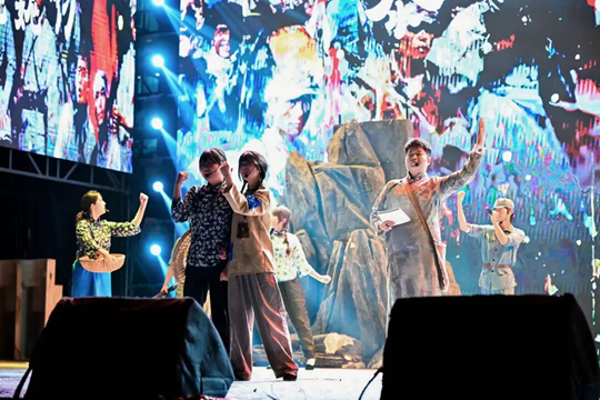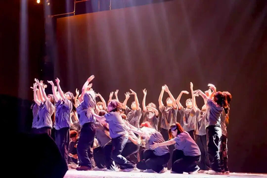 本場晚會從主題策劃到舞臺呈現(xiàn)、從節(jié)目構(gòu)思到細(xì)節(jié)把控、從服化道具到舞美設(shè)計(jì)……均由師生團(tuán)隊(duì)耗時(shí)4個(gè)月時(shí)間共創(chuàng)完成!拔覀兿嘈,今晚在舞臺上被點(diǎn)燃的那份勇氣與共鳴,將伴隨他們走向更遠(yuǎn)的未來。”本場晚會導(dǎo)演、藝術(shù)教育中心老師王兆瑞說。