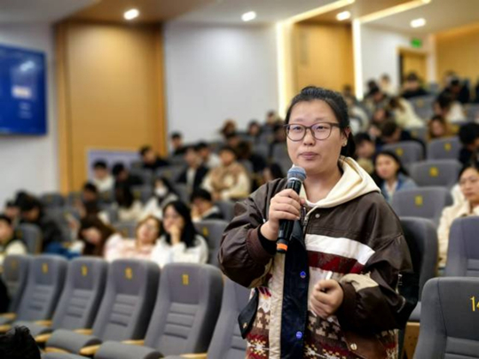 隨后,國際交流學(xué)院劉一弘院長結(jié)合自身在德國FOM大學(xué)的訪學(xué)經(jīng)歷,分享了跨文化交流中的觀察與感悟。她從學(xué)術(shù)氛圍、教學(xué)理念、師生互動等多個維度,對比了中德教育的異同,為在場學(xué)生開展跨文化交流提供了全新的視角。