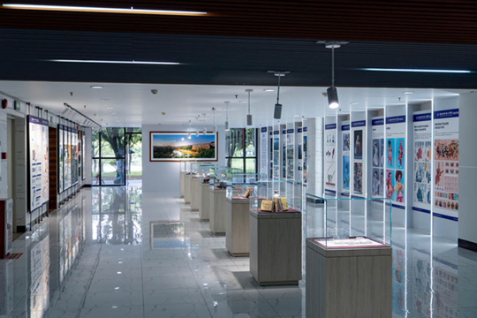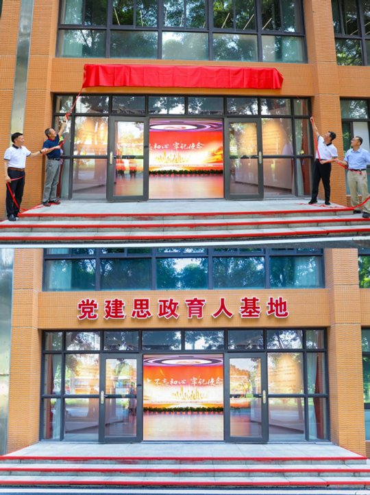 黨建思政育人基地位于行政樓一、二層,占地1330.56平方米,是立體化呈現(xiàn)黨史校史融合育人的重要平臺(tái),形成“可聽(tīng)可觸可感”的思政教育新范式。一樓展館由“璀璨的中華文明”“光輝的奮斗歷程”“廣東紅色印記”“習(xí)近平新時(shí)代中國(guó)特色社會(huì)主義思想”“習(xí)近平總書(shū)記關(guān)于教育的重要論述(摘編)”“中國(guó)共產(chǎn)黨人精神譜系”“加強(qiáng)黨對(duì)學(xué)校工作的全面領(lǐng)導(dǎo)”“落實(shí)立德樹(shù)人根本任務(wù)”等8個(gè)板塊組成,前6個(gè)部分系統(tǒng)構(gòu)建了從歷史縱深到時(shí)代擔(dān)當(dāng)、從思想引領(lǐng)到實(shí)踐方略的完整邏輯鏈條,展陳內(nèi)容展現(xiàn)了中華文明的賡續(xù)與黨的奮斗光輝,闡釋了習(xí)近平新時(shí)代中國(guó)特色社會(huì)主義思想的實(shí)踐偉力;后2個(gè)部分展現(xiàn)了學(xué)校在落實(shí)黨的全面領(lǐng)導(dǎo),確保黨的教育事業(yè)始終沿著正確方向前進(jìn)的生動(dòng)實(shí)踐。二樓展館由“創(chuàng)始人”“歷任領(lǐng)導(dǎo)”“傳承沿革”“領(lǐng)導(dǎo)關(guān)懷”“黨建引領(lǐng)”“人才培養(yǎng)”“師資隊(duì)伍”“國(guó)際交流”等14個(gè)板塊組成,以沉浸式展陳方式,全景呈現(xiàn)了學(xué)校二十載辦學(xué)歷程、辦學(xué)成果與育人成效,通過(guò)豐富的圖文資料和實(shí)物展品,直觀感受學(xué)校在人才培養(yǎng)、科研創(chuàng)新、社會(huì)服務(wù)等方面取得的豐碩成果。