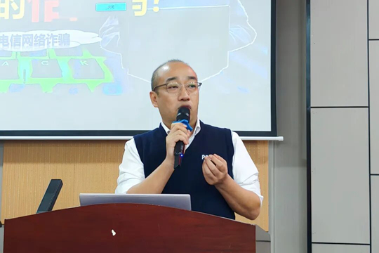 宣講環(huán)節(jié)結(jié)束后,講座主體內(nèi)容由學(xué)工處處長鞏非與保衛(wèi)處副處長王卜全輪流授課。授課過程中,二人圍繞課件中“四大高發(fā)詐騙類型”展開深入講解,重點(diǎn)剖析了“殺豬盤”等社交詐騙的感情鋪墊套路、緬北電詐園區(qū)的全鏈條犯罪模式,以及直播間領(lǐng)福利、游戲裝備交易等貼近學(xué)生生活的典型案例。同時(shí),結(jié)合“貪婪、恐懼”等受騙心理原因,向新生們系統(tǒng)傳授了“不輕信陌生來電、不透露個(gè)人信息、不隨意轉(zhuǎn)賬”的“三不原則”,以及安裝國家反詐中心APP、設(shè)置安全暗號(hào)、大額轉(zhuǎn)賬視頻核實(shí)等實(shí)用防御策略。