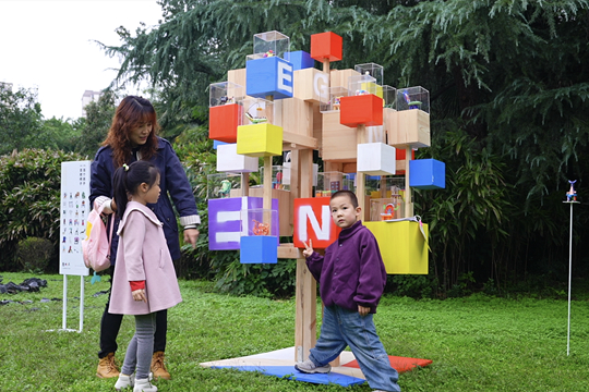 借由此次大地藝術(shù)節(jié)契機(jī),人文教育學(xué)院系統(tǒng)整合了校園內(nèi)的草坪、樹林、設(shè)計博物館與學(xué)院實(shí)驗(yàn)實(shí)訓(xùn)室、北D負(fù)一層展廳等空間,正式成立了艾多思兒童美術(shù)館。