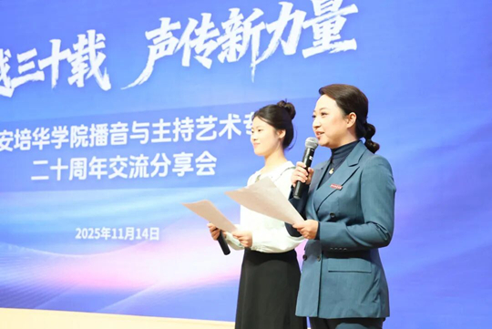 2025年11月14日,“跨越三十載·聲傳新力量”西安培華學(xué)院播音與主持藝術(shù)專業(yè)二十周年交流分享會(huì)在明德樓報(bào)告廳舉行。活動(dòng)邀請(qǐng)與學(xué)校結(jié)緣30載的中央廣播電視總臺(tái)播音指導(dǎo),原中央電視臺(tái)《新聞聯(lián)播》欄目主播、播音部主任李瑞英作為特邀主講嘉賓重返培華,為現(xiàn)場(chǎng)三百余名師生帶來(lái)一場(chǎng)高規(guī)格的學(xué)術(shù)與思想盛宴。