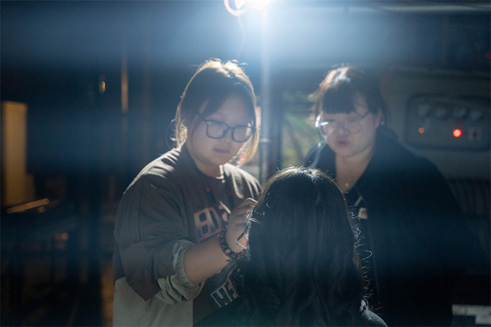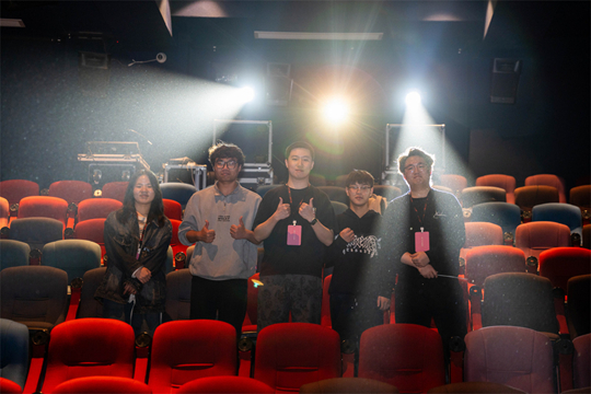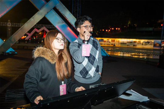 臺前的精彩,離不開幕后的默默付出。燈光師鹿馨月同學(xué)說:“燈光不只是照亮舞臺,它是情緒的語言,是故事的延伸!闭{(diào)音臺前,調(diào)音師衛(wèi)夢飛同學(xué)正全神貫注應(yīng)對著陌生場地帶來的多重挑戰(zhàn)!俺醯酱鬀錾降哪吧鷪龅,接耳麥、對頻、調(diào)參數(shù)都比校園活動更有挑戰(zhàn),但當(dāng)演員臺詞清晰傳遞、音樂與劇情完美融合,我才懂調(diào)音不只是技術(shù)操作,更是用聲音為戲劇‘搭臺’,也對‘聲音服務(wù)于藝術(shù)’有了更真切的理解。”