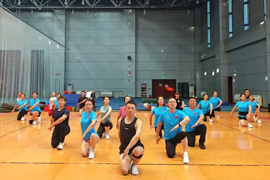 廣播體操項目陜西代表隊由20人組成,平均年齡44.6歲,隊員們都具有高級職稱的教練員、裁判員資質,常年扎根推廣全民健身運動的第一線。從6月上旬到7月底,在為期40多天的訓練備賽中,隊員們堅持練習體能,打磨技術動作,狠抓動作細節(jié),一個抬手角度、一次轉身節(jié)奏,都要反復打磨到全隊一致。