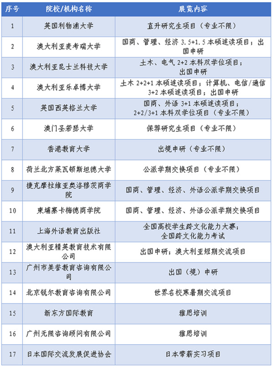此外,合作院校與新東方國際教育、北京銳爾教育咨詢有限公司等多所機構(gòu)還舉辦了專場宣講會,為同學(xué)們介紹雅思培訓(xùn)、世界名校寒暑期交流、海外帶薪實習(xí)等項目,為學(xué)生鋪就多元發(fā)展的國際化道路。