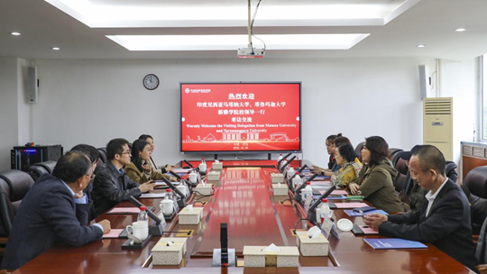 隨后,雙方在圖書館第一會議室進行洽談。史春猛校助代表學校致歡迎辭,期待以此次交流為契機,推動雙方在人才培養(yǎng)、學術(shù)研究、師生交流等領域深度牽手。接下來,雙方圍繞學生交換、教師互訪、聯(lián)合科研、課程共建等議題暢所欲言,達成多項共識。會場氣氛熱烈而友好,禮品互贈、合影留念定格下攜手共進的瞬間。