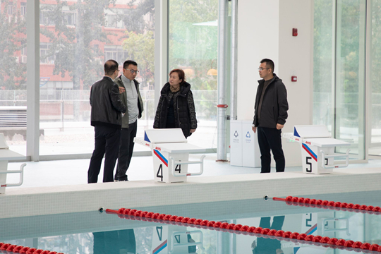 在行政中心大廳,王海若一行參觀了歐亞「30x30藝術創(chuàng)作行動」展覽,深入了解這30件師生共創(chuàng)作品的創(chuàng)作理念與過程,對歐亞將藝術與美學教育融入校園文化、塑造獨特而充滿人文氣息的育人氛圍、激發(fā)師生創(chuàng)新活力的實踐表示高度贊賞。在人文教育學院,王海若一行聽取了關于心理健康教育項目的專題報告,了解歐亞在學生心理健康教育與全人培養(yǎng)方面的系統(tǒng)化舉措。隨后,調(diào)研組走進春山里國際中心與和光文體中心,實地察看學生居住環(huán)境與休閑鍛煉設施,了解學校在生活服務與社區(qū)化管理方面的創(chuàng)新實踐。歐亞后勤集團副總經(jīng)理強建旗作了題為《“管家服務”助力國際化環(huán)境運維和高質(zhì)量發(fā)展》的物業(yè)管理主題報告。