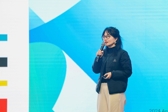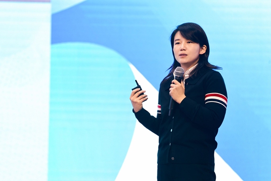 (圖六) 品牌傳播部部長(zhǎng)張媛媛作《答案來(lái)自未來(lái),但行動(dòng)就在現(xiàn)在》主題報(bào)告