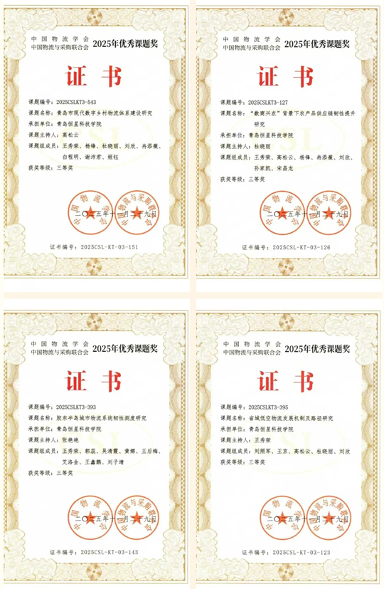 2025年11月28日至30日,2025年(第二十四次)中國物流學(xué)術(shù)年會在武漢圓滿落幕,這場匯聚全國30個省區(qū)市1500余名物流領(lǐng)域政產(chǎn)學(xué)研各界代表的行業(yè)盛會,既是對我國物流行業(yè)高質(zhì)量發(fā)展成果的總結(jié),也是對未來發(fā)展方向的探索。在本次年會的頒獎環(huán)節(jié)中,青島恒星科技學(xué)院商學(xué)院物流工程專業(yè)教師團(tuán)隊(duì)?wèi){借深厚的學(xué)術(shù)積淀與創(chuàng)新的研究實(shí)踐,斬獲4項(xiàng)優(yōu)秀課題獎和3項(xiàng)優(yōu)秀論文獎,成為本屆年會的一大亮點(diǎn),彰顯了在物流學(xué)術(shù)研究與產(chǎn)業(yè)實(shí)踐融合領(lǐng)域的卓越實(shí)力。