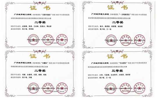 11月26日,廣州城市理工學(xué)院國(guó)際商學(xué)院收到2025年全國(guó)高校商業(yè)精英挑戰(zhàn)賽主辦方頒發(fā)的多份榮譽(yù)證書(shū)。學(xué)院選派的4支隊(duì)伍發(fā)揮出色,一舉奪得全國(guó)總決賽二等獎(jiǎng)3項(xiàng)、三等獎(jiǎng)1項(xiàng)。
