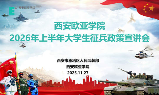 國無防不立,民無兵不安。為深入貫徹落實習(xí)近平總書記強軍思想,積極響應(yīng)黨中央、中央軍委關(guān)于征集高素質(zhì)青年入伍的戰(zhàn)略部署,引導(dǎo)廣大青年學(xué)子將愛國之心化為報國之行,11月27日,以“志存高遠礪青春,建功立業(yè)赴軍營”為主題的西安歐亞學(xué)院2026年上半年大學(xué)生征兵政策宣講會在學(xué)校圖書館學(xué)術(shù)報告廳隆重舉行。此次活動不僅是一場精準的政策解讀會,更是一堂深刻的思想動員課和國防教育課,正式掀開了西安歐亞學(xué)院新一年度征兵工作的序幕。