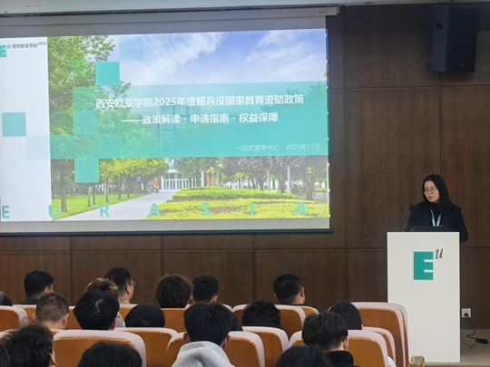 精準的保障是消除后顧之憂的關(guān)鍵。西安歐亞學(xué)院學(xué)生資助管理中心專員郭曉慧老師隨后登臺,聚焦同學(xué)們最為關(guān)切的學(xué)業(yè)與經(jīng)濟支持問題,對“服兵役國家教育資助政策”進行了專業(yè)細致的解讀。她從資助政策的具體內(nèi)容、申請流程指南到學(xué)校的對接部門與資源平臺,都做了清晰的說明,學(xué)校也將為入伍學(xué)生提供“一站式”全流程服務(wù),確保每位有志學(xué)子都能“輕裝上陣”,安心報國。