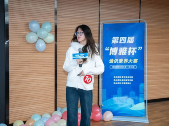 在開(kāi)放性試題問(wèn)答環(huán)節(jié)中,參賽選手們以敏銳的時(shí)代感知、扎實(shí)的知識(shí)積淀與靈動(dòng)的思辨能力,帶來(lái)了一場(chǎng)精彩的思想碰撞。選手們圍繞元宇宙、時(shí)間價(jià)值、人生價(jià)值等多元議題,結(jié)合自身經(jīng)歷、熱點(diǎn)案例與經(jīng)典作品侃侃而談,邏輯縝密且表達(dá)流暢,既展現(xiàn)了對(duì)前沿趨勢(shì)的密切關(guān)注,也流露了對(duì)生活本質(zhì)的深度思考,充分彰顯了當(dāng)代大學(xué)生的通識(shí)素養(yǎng)與青春風(fēng)采。