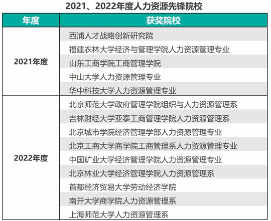 先鋒評選歷經(jīng)十六年的沉淀與積累,目前已成為人力資源行業(yè)內(nèi)權(quán)威性強、影響力大、認(rèn)可度高的專業(yè)評選活動。近三年,獲得“人力資源先鋒院校”獎項的有西浦人才戰(zhàn)略創(chuàng)新研究院、中山大學(xué)、華中科技大學(xué)、南開大學(xué)、首都經(jīng)濟貿(mào)易大學(xué)、北京師范大學(xué)等院校。