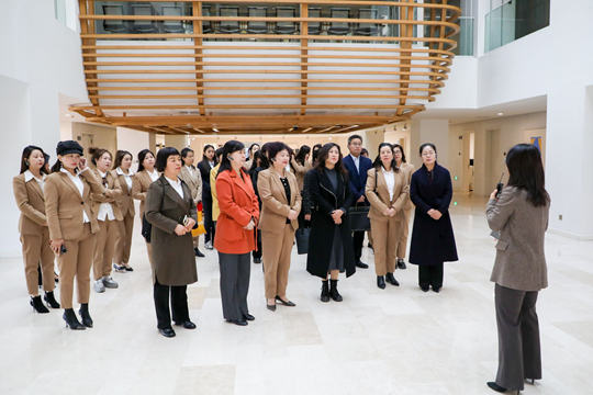 西安歐亞學院副校長張樂芳、職業(yè)發(fā)展與企業(yè)合作部部長王麗霞帶領(lǐng)銅川市婦聯(lián)副主席何冬娥及女企業(yè)家們先后參觀學校行政樓、艾德藝術(shù)設(shè)計學院、文化傳媒學院、南區(qū)客廳、虹橋碎石廣場、人文教育學院教學樓等。參觀過程中,張校長從學校建筑理念、育人模式、校園文化、社會服務(wù)等方面進行了詳細的介紹。張副校長說:“歐亞注重培養(yǎng)重品格、會思考、善溝通,具有社會責任、創(chuàng)新精神、理論素養(yǎng)和較強實踐能力的高素質(zhì)應(yīng)用型人才,主張學生按照自己本來的樣子的生長。”