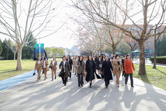 。▓D一-圖四)張樂芳副校長帶領(lǐng)女企業(yè)家們參觀校園