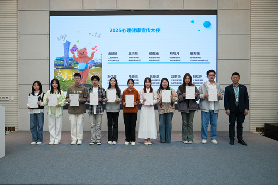 啟動(dòng)儀式上,學(xué)生發(fā)展處處長董楊為俞皓延等10名優(yōu)秀的心理委員頒發(fā)了2025年心理健康宣傳大使的聘書。