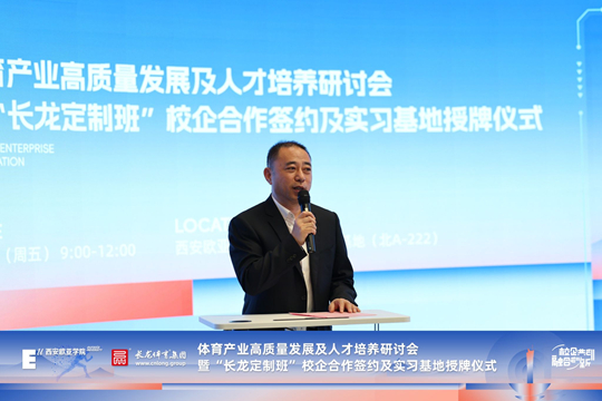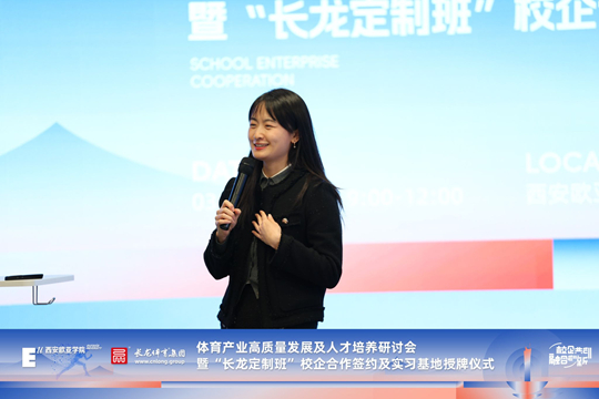 “‘長龍定制班’是西安歐亞學(xué)院體育經(jīng)濟(jì)與管理專業(yè)為體育產(chǎn)業(yè)培養(yǎng)應(yīng)用型人才的一次重要實(shí)踐,將進(jìn)一步推動校企合作從‘資源互補(bǔ)’邁向‘價值共生’,校企攜手構(gòu)建產(chǎn)教命運(yùn)共同體,為中國體育產(chǎn)業(yè)高質(zhì)量發(fā)展注入新動能、新活力。希冀校企合作長遠(yuǎn)持久,學(xué)生在其中能夠?qū)崿F(xiàn)‘由此開始,隨處可往’!”