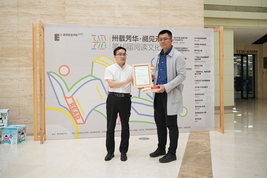 。▓D十)4月22日歐亞閱讀文化節(jié)開幕式上,辛峰(左)分享新書并向圖書館捐贈(zèng)3冊書。