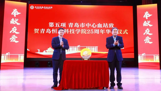 青島市中心血站站長逄淑濤特別向青島恒星科技學(xué)院贈(zèng)送25周年校慶紀(jì)念賀禮,并高度評(píng)價(jià):“恒星師生的持續(xù)奉獻(xiàn),為城市用血安全注入青春力量!