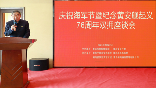 4月22日,慶祝中國人民解放軍海軍成立76周年暨紀(jì)念黃安艦起義76周年雙擁活動(dòng)在青島恒星科技學(xué)院成功舉辦。本次活動(dòng)由青島恒星科技學(xué)院和青島市文泉沙龍聯(lián)合主辦,青島晏甄書畫院、文泉沙龍書畫院、青島精英酒店管理有限公司協(xié)辦。原市老領(lǐng)導(dǎo)、部隊(duì)離退休老干部、軍旅書畫藝術(shù)家及社會(huì)各界代表約120人齊聚一堂,共敘海軍發(fā)展史,共話軍民山海情。青島恒星集團(tuán)主席、學(xué)校董事長陳昌金,黨委書記劉龍海出席活動(dòng)。