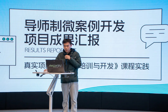 學(xué)生正在進(jìn)行《培訓(xùn)與開發(fā)》課程項(xiàng)目成果匯報(bào)