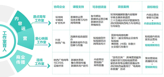 最終確認(rèn)學(xué)生們能夠加入“西安老字號(hào)企業(yè)品牌傳播影響力分析”、“其實(shí)創(chuàng)意——帶你get新媒體整合營(yíng)銷傳播的魅力”、“AI賦能品牌故事的新媒體表達(dá)與傳播”、“短視頻內(nèi)容營(yíng)銷——廣電篇”四個(gè)真實(shí)項(xiàng)目;同時(shí)與其實(shí)九思文化傳播有限公司、簡(jiǎn)單有為科技有限公司、陜西廣電網(wǎng)絡(luò)傳媒(集團(tuán))股份有限公司西安分公司等聯(lián)合開展項(xiàng)目實(shí)踐工作坊!