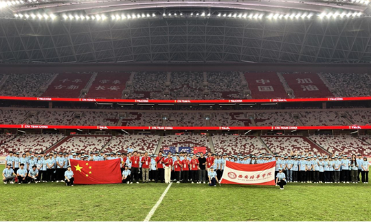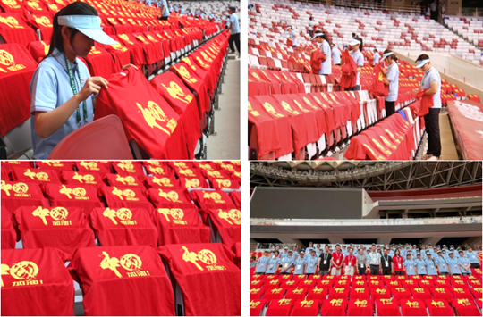 由培華志愿者精心布置的“紅色海洋”成為賽場又一亮點(diǎn)。賽前,志愿者們分組將紅色助威服整齊擺放在6萬座席上;比賽間隙,引導(dǎo)觀眾穿戴助威服,帶動(dòng)全場形成紅色視覺矩陣,與賽場內(nèi)的國旗和加油標(biāo)語相呼應(yīng),成為央視轉(zhuǎn)播畫面中的經(jīng)典場景。