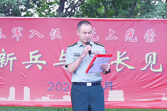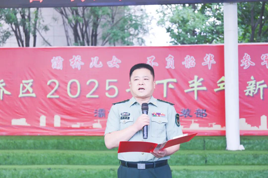 會(huì)上,區(qū)人武部政治委員李海峰宣讀新兵入伍命令,新兵們挺拔的身姿更顯堅(jiān)定。