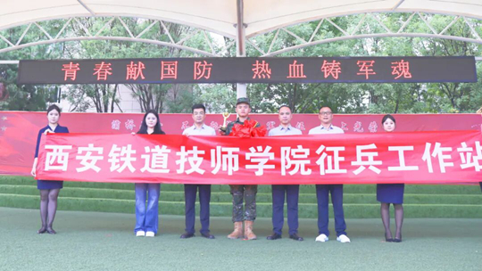西安鐵道技師學(xué)院黨委書(shū)記、校長(zhǎng)左永煥,黨委副書(shū)記、副校長(zhǎng)周造華以及征兵工作站站長(zhǎng)趙磊等人同入伍的新兵合影留念,并叮囑他們,珍惜從學(xué)校大學(xué)生入伍的難得機(jī)遇,建功軍營(yíng),報(bào)效國(guó)家,為母校增光添彩!