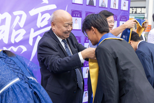 活動(dòng)伊始,校領(lǐng)導(dǎo)們逐一為新生佩戴上象征成長與初心的榮譽(yù)綬帶。綬帶垂肩,不僅是學(xué)院院徽中卓越精神的體現(xiàn),更是對(duì)學(xué)子們未來“追求卓越”的無聲期許。