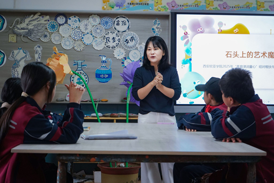 近日,西安歐亞學(xué)院結(jié)對(duì)幫扶清澗縣牛家灣小學(xué)教育環(huán)境提升設(shè)計(jì)與改造工程圓滿完成,以“石頭上的藝術(shù)魔法”為主題的公益藝術(shù)課在清澗縣寬州鎮(zhèn)牛家灣小學(xué)成功舉辦。