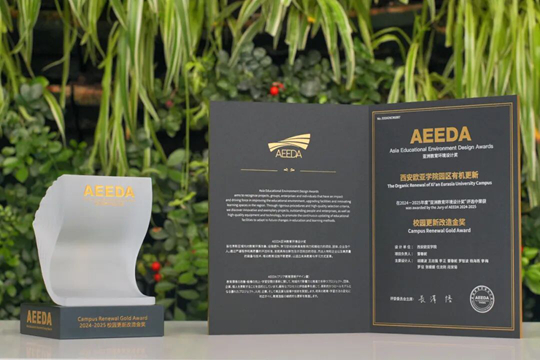 9月25日,備受矚目的2024-2025年度亞洲教育環(huán)境設(shè)計(jì)獎(jiǎng)(Asia Educational Environment Design Awards, 簡(jiǎn)稱AEEDA)頒獎(jiǎng)典禮在西安皓唐國(guó)際酒店舉行。西安歐亞學(xué)院從亞洲范圍內(nèi)327個(gè)參評(píng)項(xiàng)目中脫穎而出,一舉斬獲校園更新改造金獎(jiǎng)、學(xué)習(xí)空間設(shè)計(jì)金獎(jiǎng)、校園景觀設(shè)計(jì)金獎(jiǎng)及學(xué)習(xí)空間設(shè)計(jì)銀獎(jiǎng),取得3金1銀的優(yōu)異成績(jī),成為本年度該獎(jiǎng)項(xiàng)中獲獎(jiǎng)數(shù)量與質(zhì)量兼具、高校教育空間創(chuàng)新的標(biāo)桿范例。