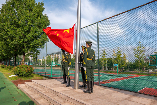 莊嚴(yán)的國歌聲響起,五星紅旗冉冉升起,全體師生肅立行注目禮。