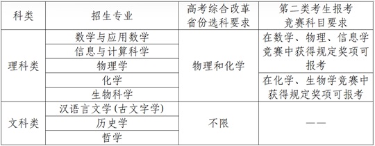 各省(區(qū)、市)符合2025年普通高等學(xué)校招生全國(guó)統(tǒng)一考試報(bào)名條件,具有強(qiáng)烈的專業(yè)興趣,綜合素質(zhì)優(yōu)秀,基礎(chǔ)學(xué)科拔尖,并有志于將來(lái)從事相關(guān)領(lǐng)域科學(xué)技術(shù)工作的學(xué)生。申請(qǐng)報(bào)名考生分為以下兩類: