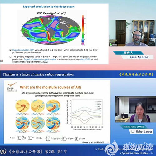 2022年,未來(lái)海洋學(xué)院開(kāi)設(shè)國(guó)內(nèi)首門(mén)“全球海洋公開(kāi)課”,由國(guó)際著名海洋化學(xué)專家、瑞典哥德堡大學(xué)Isaac Santos教授與學(xué)院導(dǎo)師許博超教授聯(lián)合講授第一課,美國(guó)國(guó)家工程院院士L.Ruby Leung博士與導(dǎo)師宋豐飛教授聯(lián)合講授第二課。“全球海洋公開(kāi)課”通過(guò)構(gòu)建國(guó)際化開(kāi)放式課堂,邀請(qǐng)海洋科學(xué)等相關(guān)領(lǐng)域世界一流科學(xué)家,緊跟國(guó)際前沿,圍繞最新科研進(jìn)展進(jìn)行授課。課程采取開(kāi)放性、前沿性、交叉性的講授模式,立足中國(guó)海大、面向全球師生、定位世界一流,是中國(guó)在海洋科學(xué)領(lǐng)域第一次開(kāi)設(shè)面向全球的公開(kāi)課,來(lái)自10余個(gè)國(guó)家和地區(qū)的12000余位研究生參與課程學(xué)習(xí)。