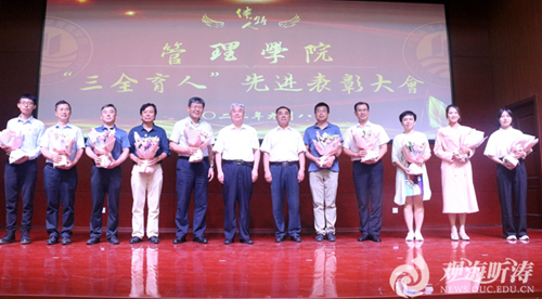 大會(huì)以教育部《高校思想政治工作質(zhì)量提升工程實(shí)施綱要》發(fā)布的“十大育人體系”為標(biāo)準(zhǔn),面向全院師生開展評選,共有18名在學(xué)院“三全育人”工作中貢獻(xiàn)突出的師生團(tuán)隊(duì)獲此殊榮,F(xiàn)場以視頻短片形式回顧了學(xué)院兩年來“三全育人”綜合改革過程中涌現(xiàn)出的一批“溫情陪伴、悉心指引,德育匠心、鑄就英才”的育人楷模和感人事跡。通過宣讀頒獎(jiǎng)詞、學(xué)校相關(guān)職能部處領(lǐng)導(dǎo)頒獎(jiǎng)、獲獎(jiǎng)代表訪談和師生互動(dòng)等環(huán)節(jié),在表彰育人模范、講好育人故事的同時(shí),也讓全院師生備受鼓舞,為學(xué)院下一步的校院兩級綜合管理體制改革凝心聚力,打下厚實(shí)的基礎(chǔ)。